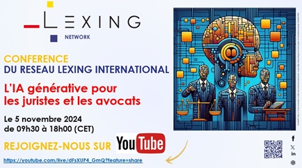La conférence « LIA générative pour les juristes et les avocats » se déroulera le 5 novembre 2024, de 09h30 à 18h00 dans les locaux du cabinet Lexing Avocats à Paris et à distance.